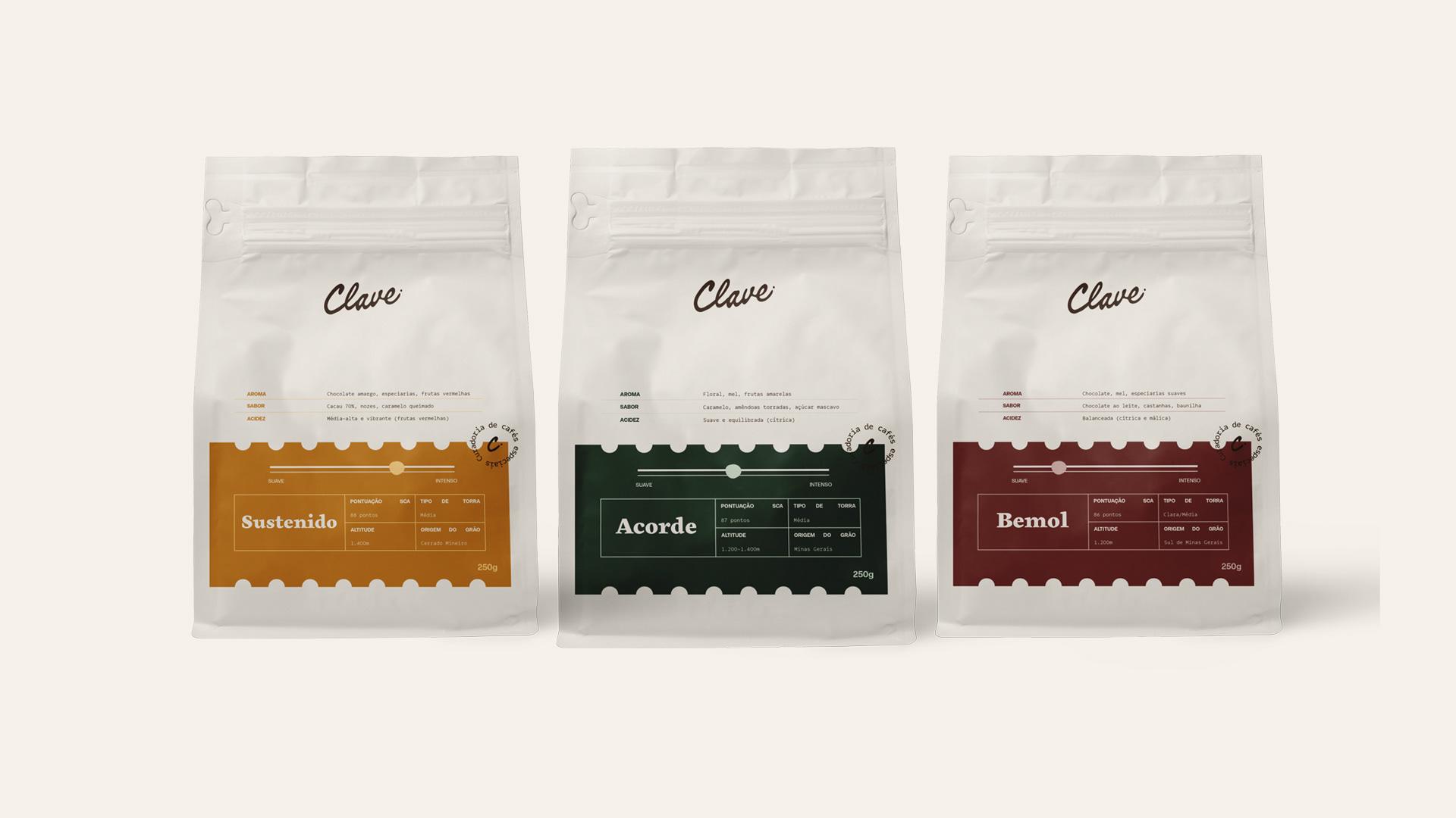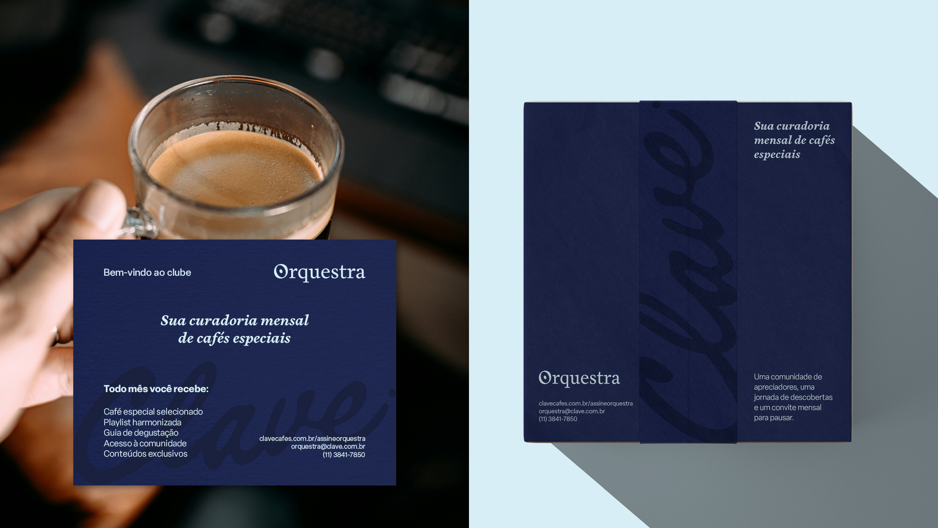 Clave se destaca pela sutileza conceitual e execução artesanal premium. A identidade funciona em embalagens físicas, digital e espaços físicos com igual eficiência. Além de abranger a submarca do clube de assinaturas Orquestra e o projeto da futura cafeteria.