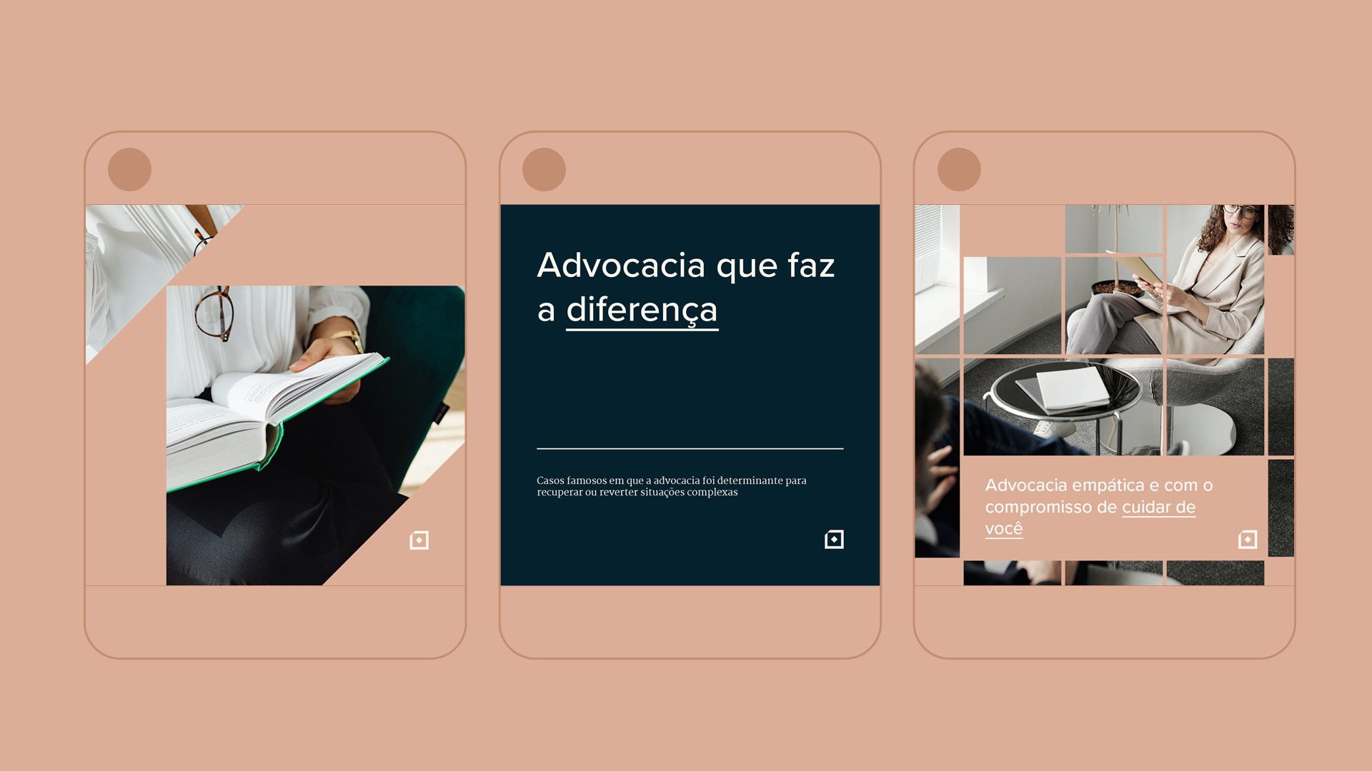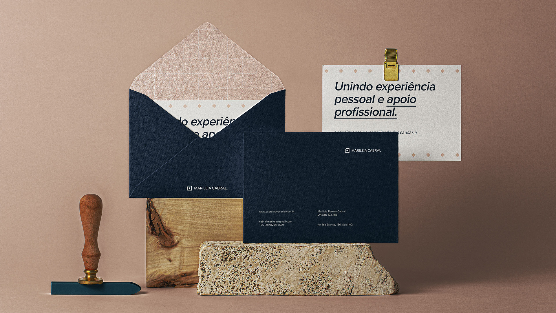 Nosso desafio foi unir tanto o lado de causas e consultoria com o lado da correspondência, passando a imagem de segurança, confiança e conforto para ambos os públicos sem a segmentação do projeto em duas marcas diferentes, já que, inicialmente, a cliente não teria uma equipe de design para fazer toda a gestão de marca mais complexa.