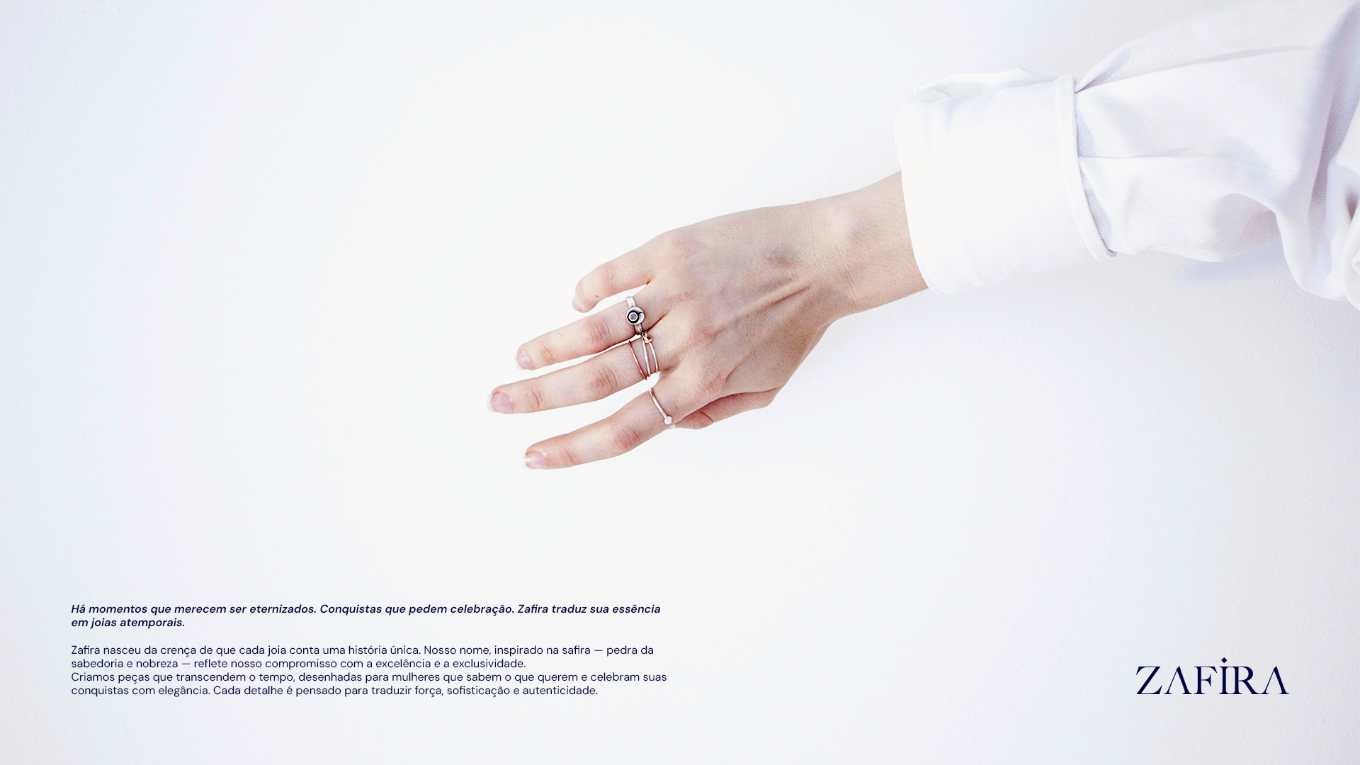 Zafira é uma marca de alta joalheria criada para mulheres que celebram suas conquistas com elegância e autenticidade. O desafio foi desenvolver uma identidade visual que traduzisse sofisticação, exclusividade e atemporalidade, valores essenciais para posicionar a marca no mercado de luxo.